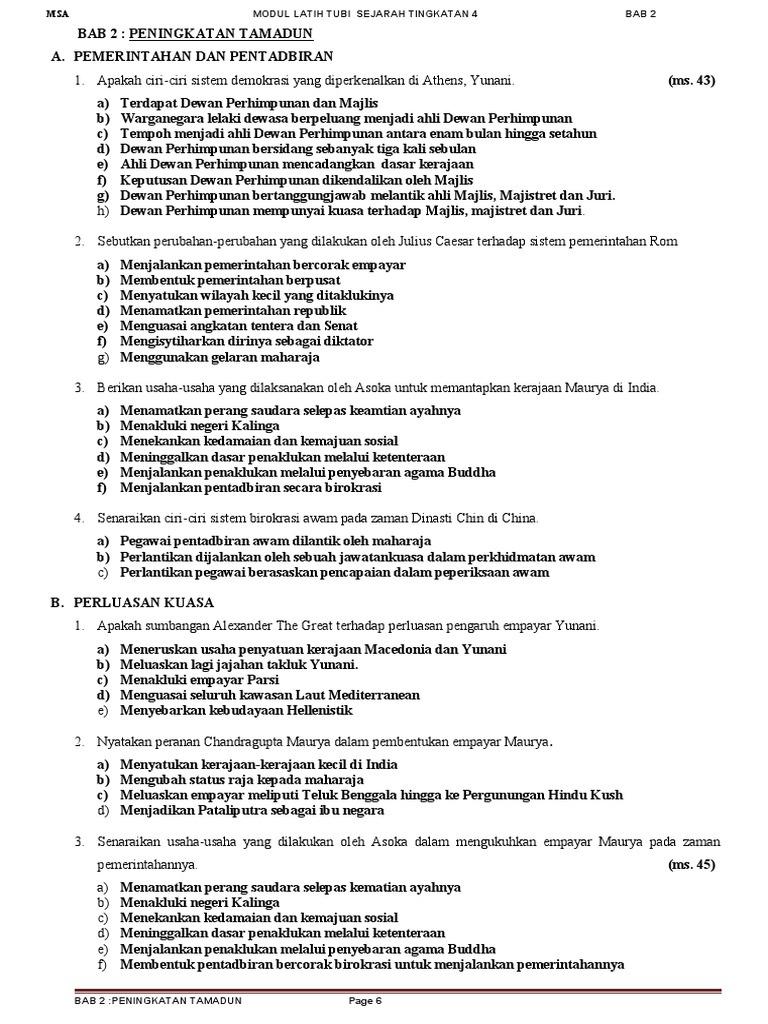 - Jawapan Buku Aktiviti Sejarah Tingkatan 2