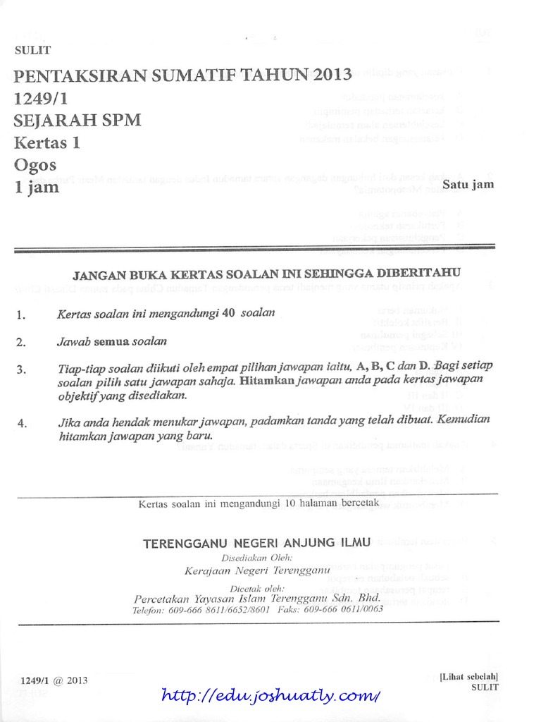 - Jawapan Objektif Sejarah Spm 2013