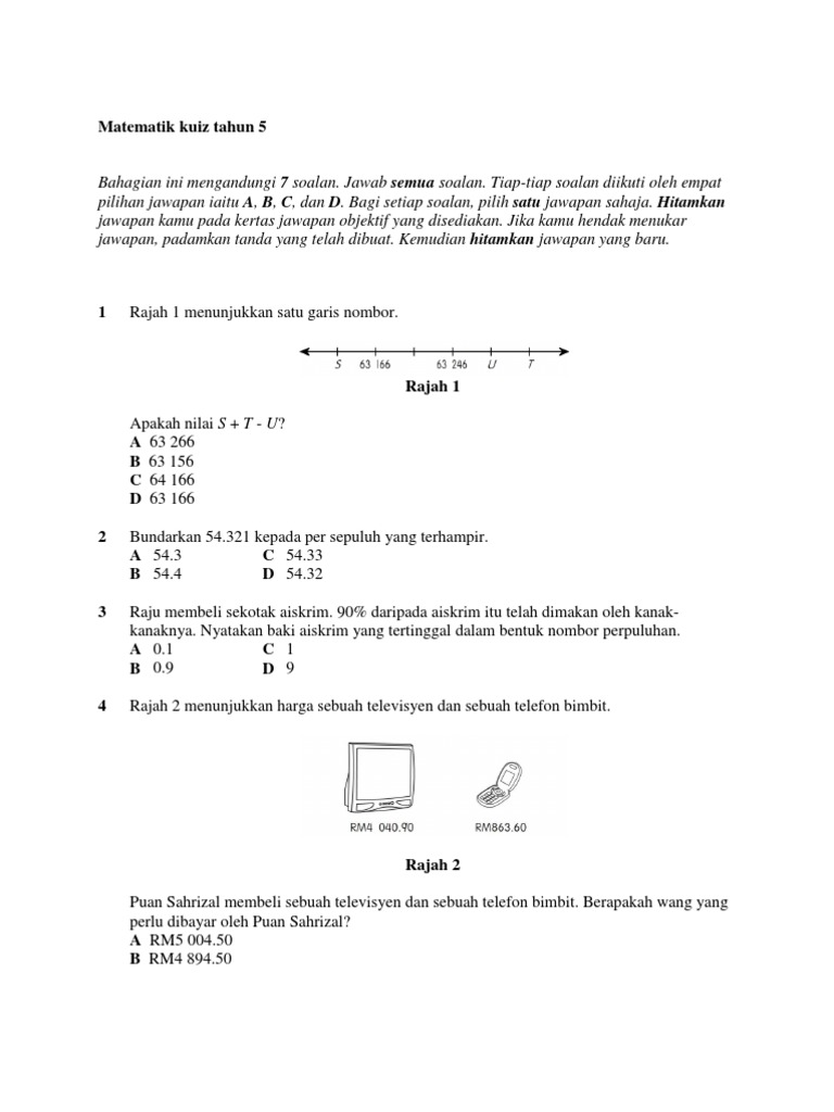 Baca soalan dengan teliti dan menulis jawapan diruang yang desediakan beserta jalan penyelesaian. Pilih gambar dan jawapan yang betul - Pilih jawapan yang betul. - Simpulan Bahasa. Kalau kita sebagai orang dewasa, kita akan cuba seboleh bolehnya menyelesaikan persamaan matematik.
