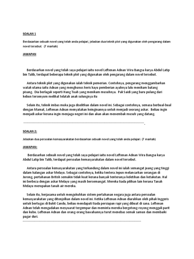 - contoh jawapan latar masyarakat novel leftenan adnan