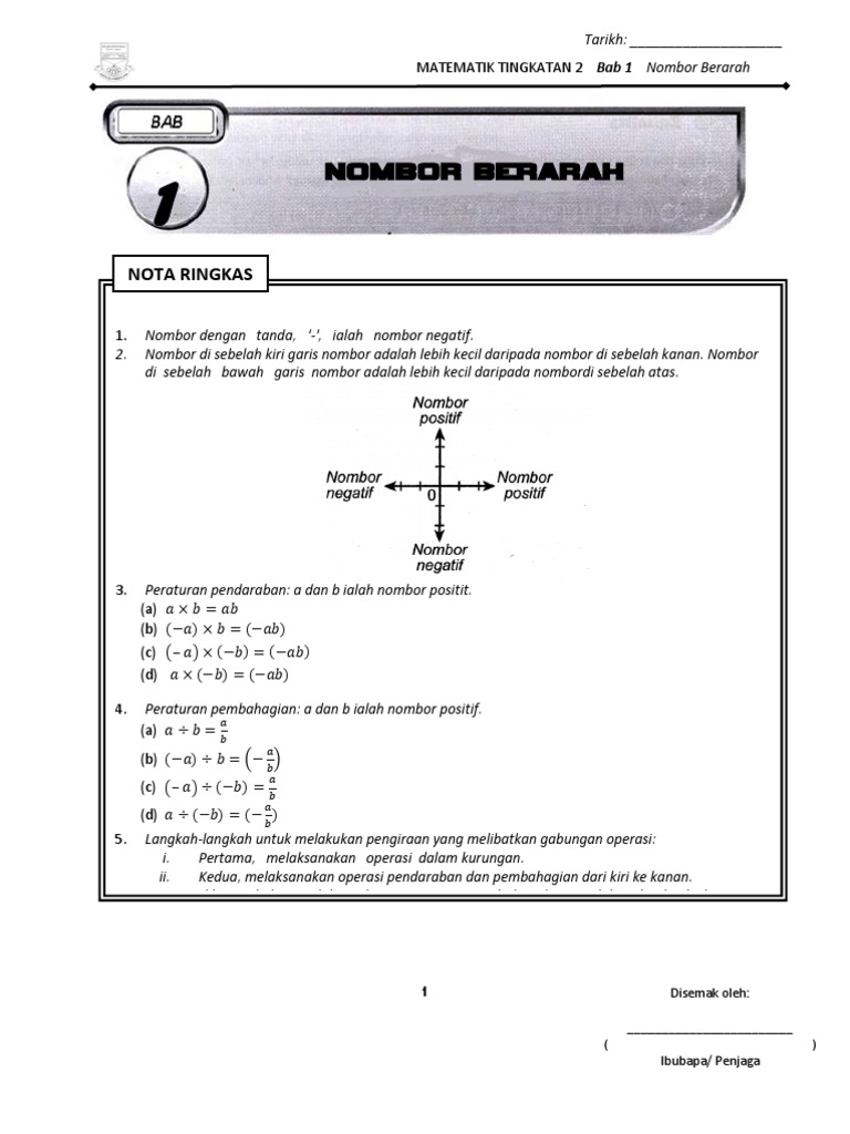 Latihan Dan Jawapan Matematik Tingkatan 1. Sebarang data anda tidak akan didedahkan kepada mana-mana pihak. Nota : Ini hanya cadangan jawapan sahaja , jawapan ini hasil perbincangan antara guru sekolah sahaja, jika ada kesilapan mohon diperbetulkan.